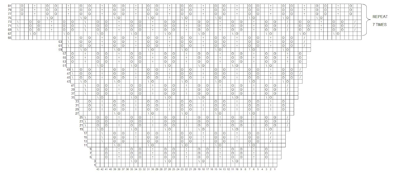 Row 5, 7, and 9: k2, yo, k2 *k3tog, k2, yo, k1,yo, k2* k3tog, k2, yo, k2