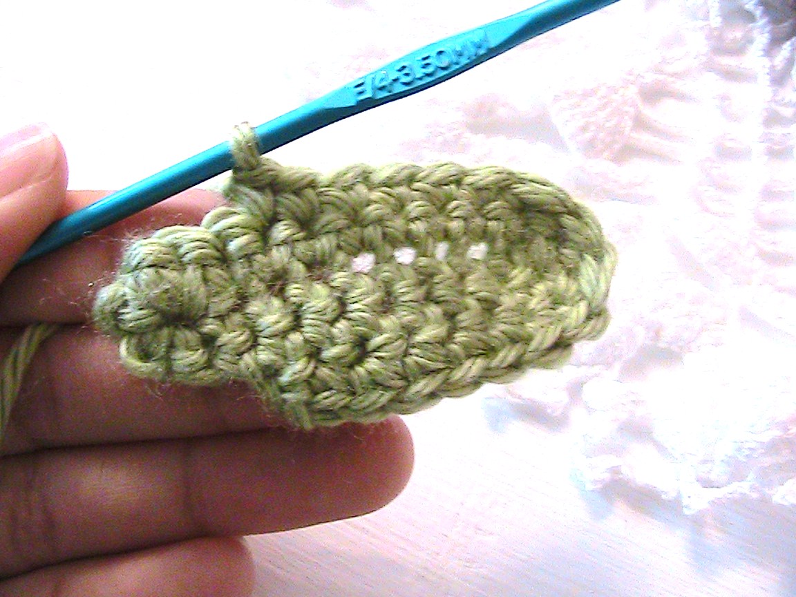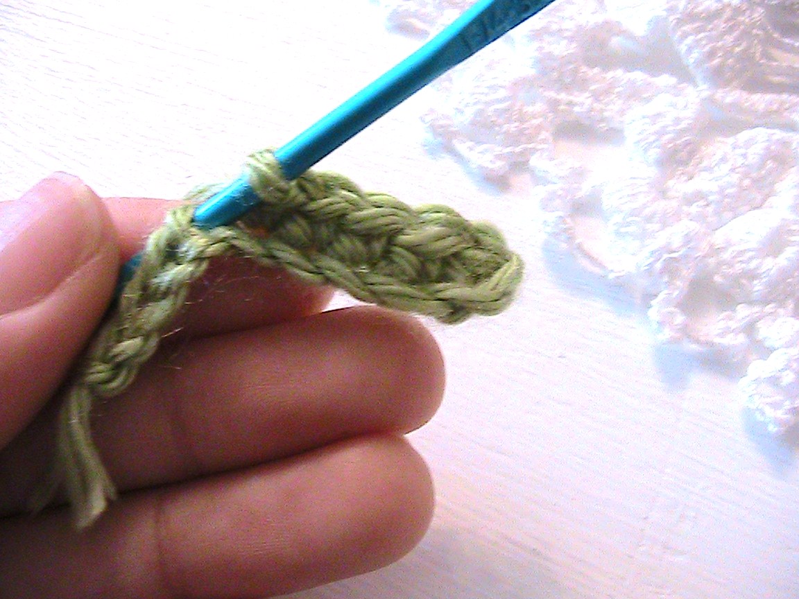Оставьте 2 цепи (для бокового Совет) из листьев. Цепь 1 очередь. Одной крючком на каждой цепочке.