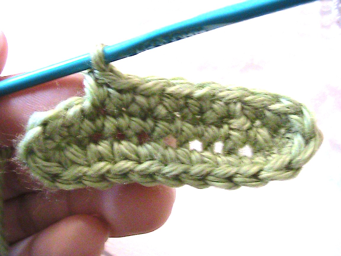 Одной крючком в поперечнике. В последнюю цепочку работы 3single крючком вместе, см. фото.