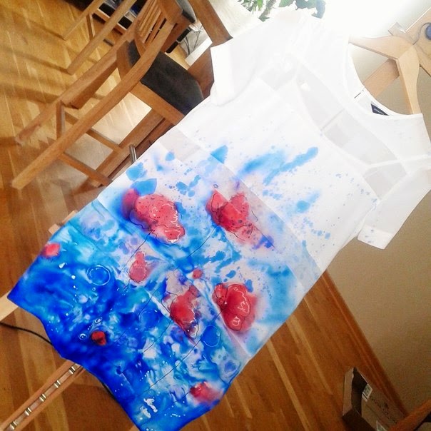 Ее работы меня поразили в самое сердце, заставив искренне восхищаться талантом абсолютно незнакомого мне человека. В числе ее произведений не только открытки, рисунки акварелью, маслом, но и удивительные переделки майки, платьев, обуви и даже головных уборов. Все переделки вещей легко повторить своими руками тем, кто умеет рисовать.