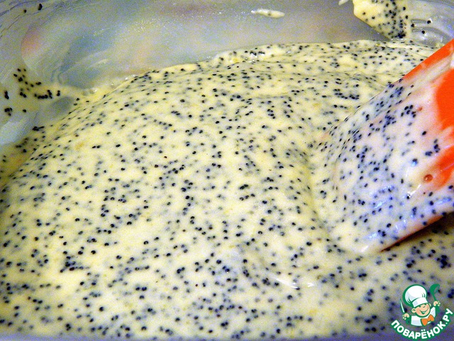 Откладываем примерно треть теста, добавляем в него мак и хорошо перемешиваем. |