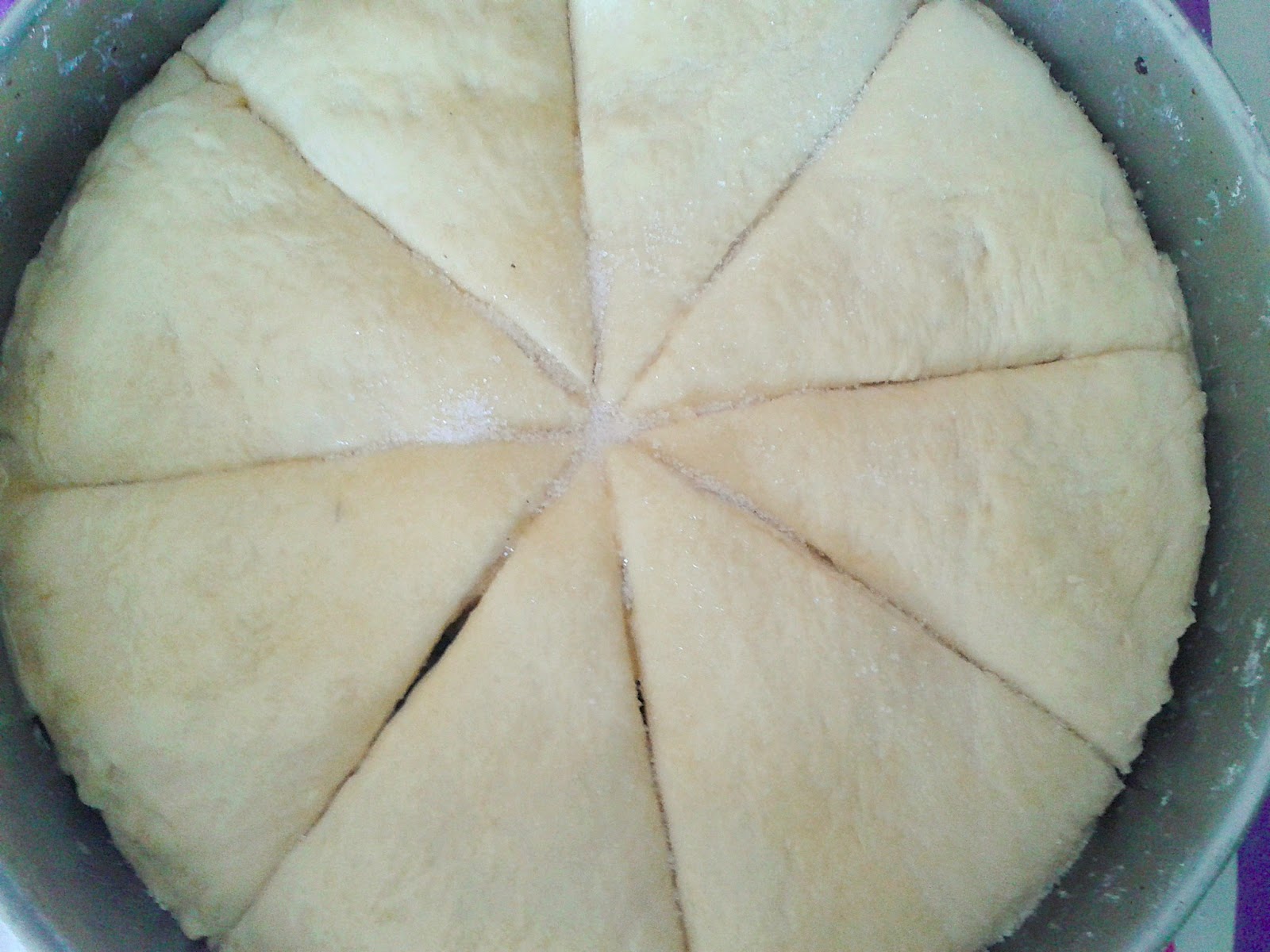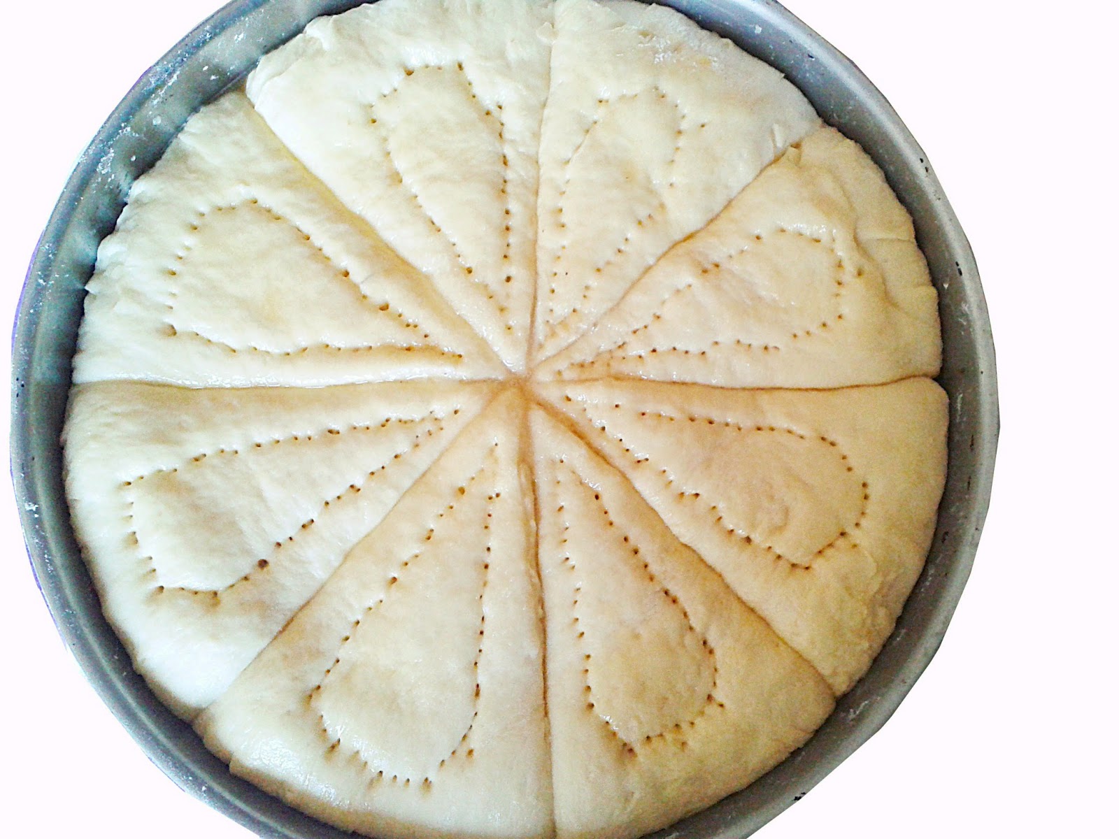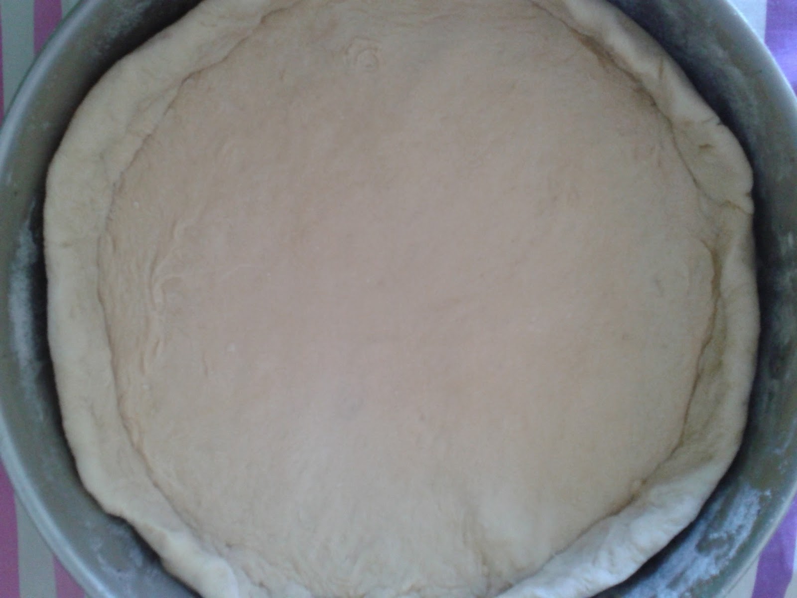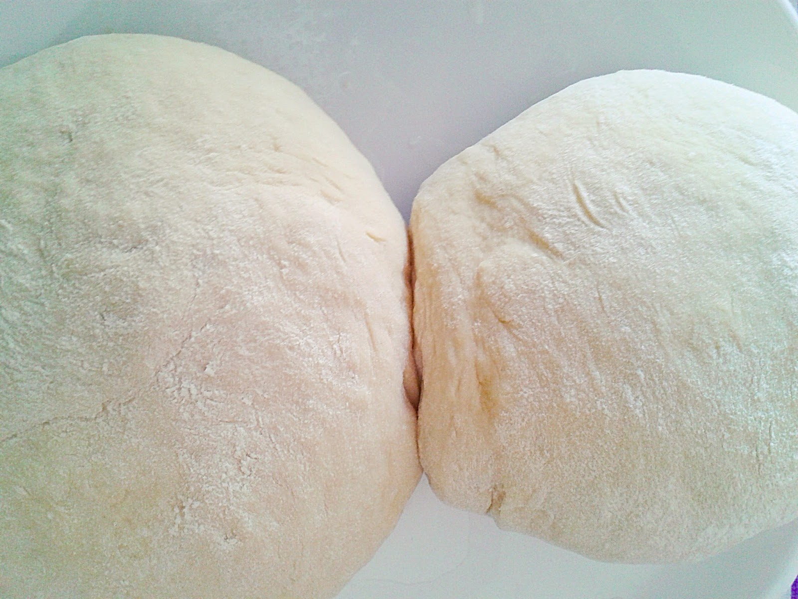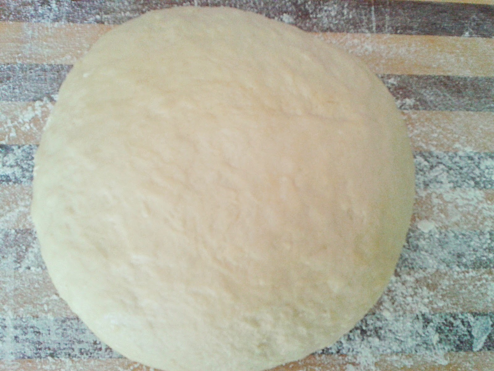 11.Когда тесто подошло ( увеличилось в объеме), делим его на 2 части. Для нижнего листа (основы) побольше, а для верхнего поменьше Раскатываем тесто.