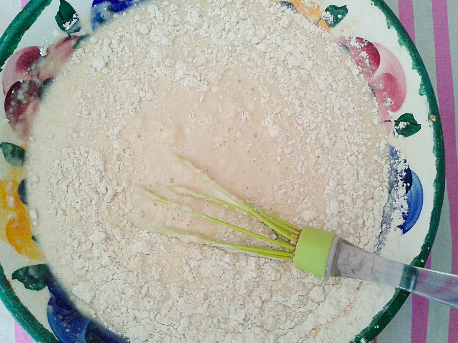 5.Всю муку сразу не высыпайте, смотрите, чтобы тесто получилось не тугое.