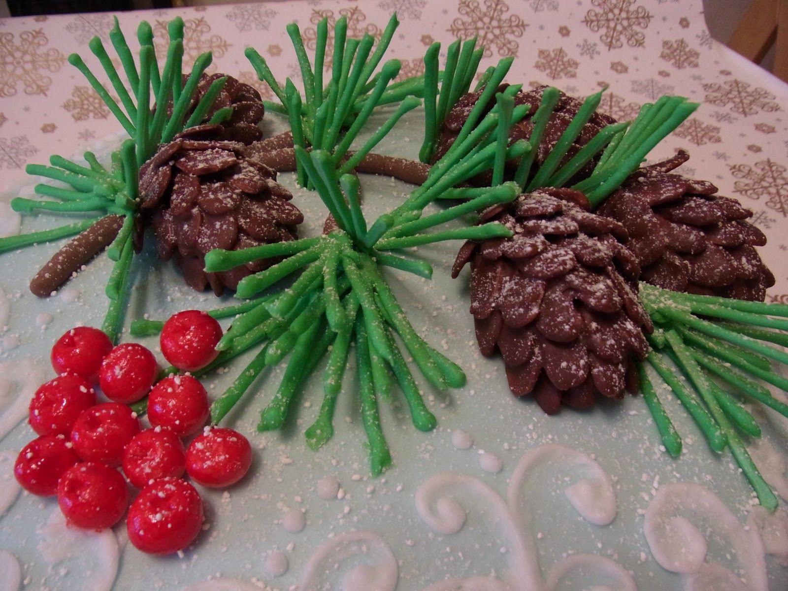 Ну вот такая ветка получилась. Иголки приклеивала между собой и на торт этим же айсингом.