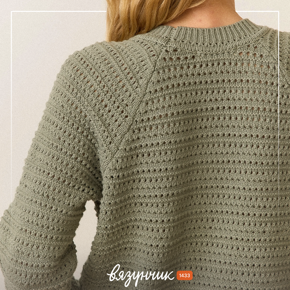 Джемпер связан сетчатым узором, но он не однообразный. Высота раппорта — целых 14 рядов!