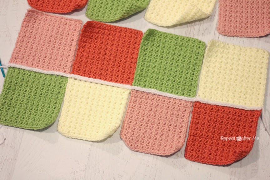 Когда вы дойдете до конца ряда, держите следующие два квадрата вместе и продолжайте соединять.