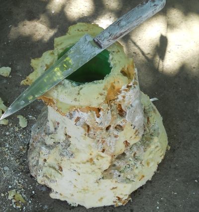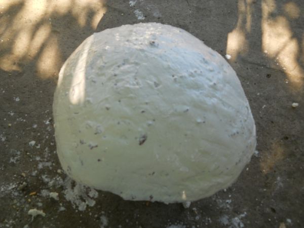 После разводим сухую шпатлёвку и рукой в резиновой перчатке выравниваем пористую поверхность гриба.