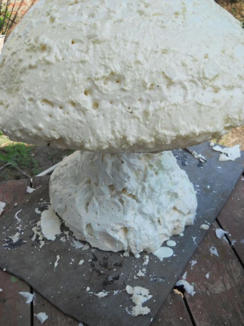 Сохнет пена быстро, и после того, как она окончательно затвердеет, мы обрезаем всё лишнее острым ножом. Максимально выравниваем и шляпку, и ножку.