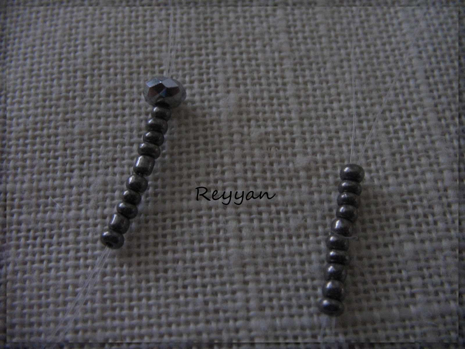 Sağa on kum boncuk, sola on kum+1 kristal takın ve kristalle çaprazlayın