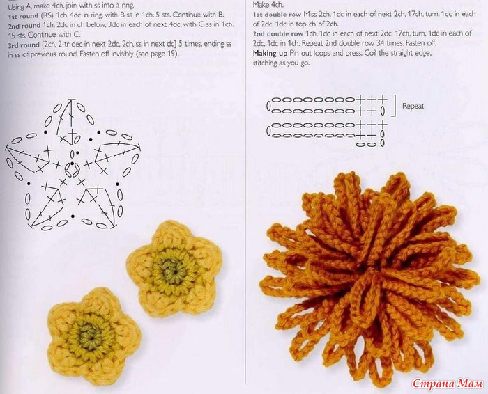 Часть 24 - Цветочки из остатков пряжи мастер-класс