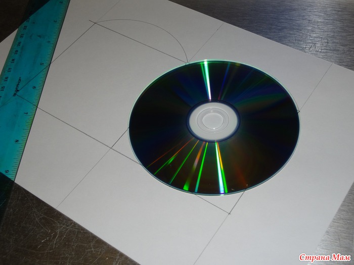 Посередине листа чертим карандашом схему будущей коробочки-это два квадрата 9,5х9,5см