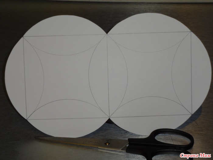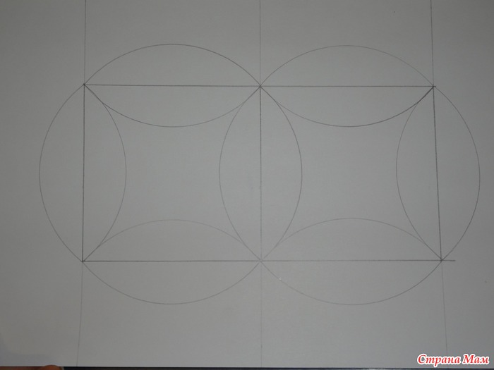 Далее берем что нибудь круглое, подходящего диаметра и дорисовываем у каждой стороны квадрата дуги