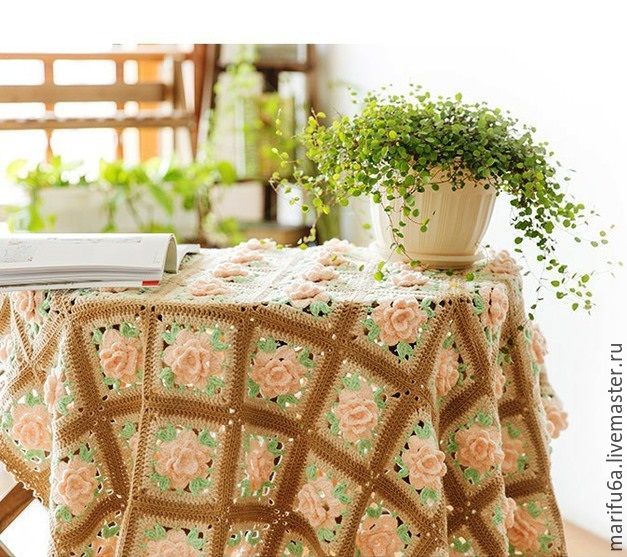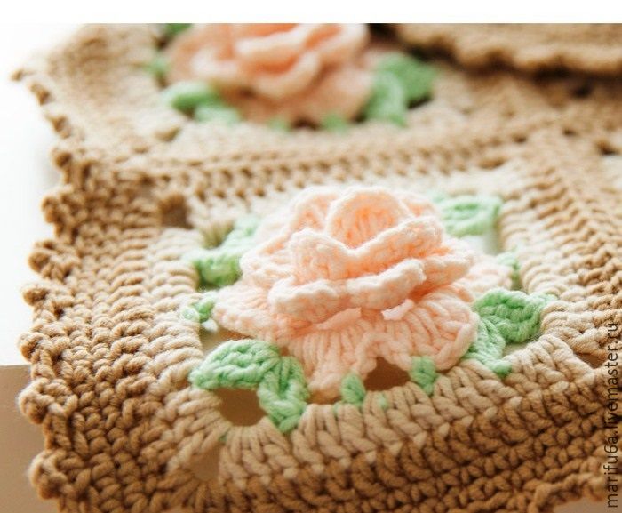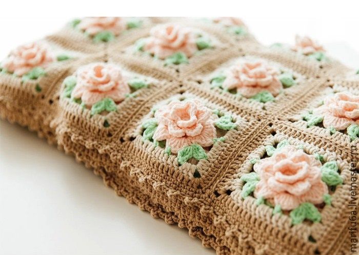 Плед с розами крючком (видео МК)