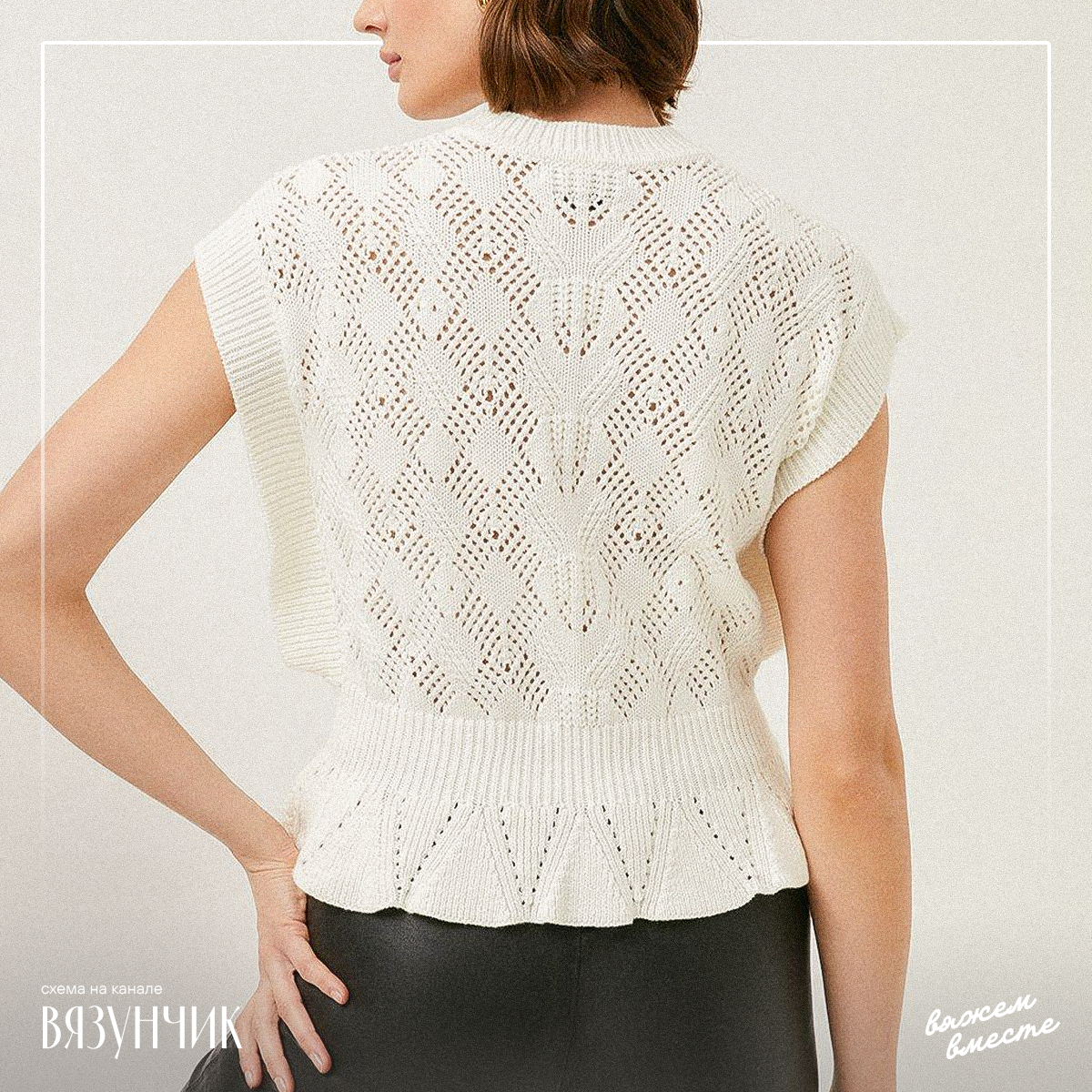 Единственное спорное место — большие вырезы под рукава. Нет фотографии, как эта часть выглядит сбоку, но я сейчас расскажу вам, как минимизировать отверстия без потери смысла. А для тех, кто не любит безрукавки есть вариант с рукавами.