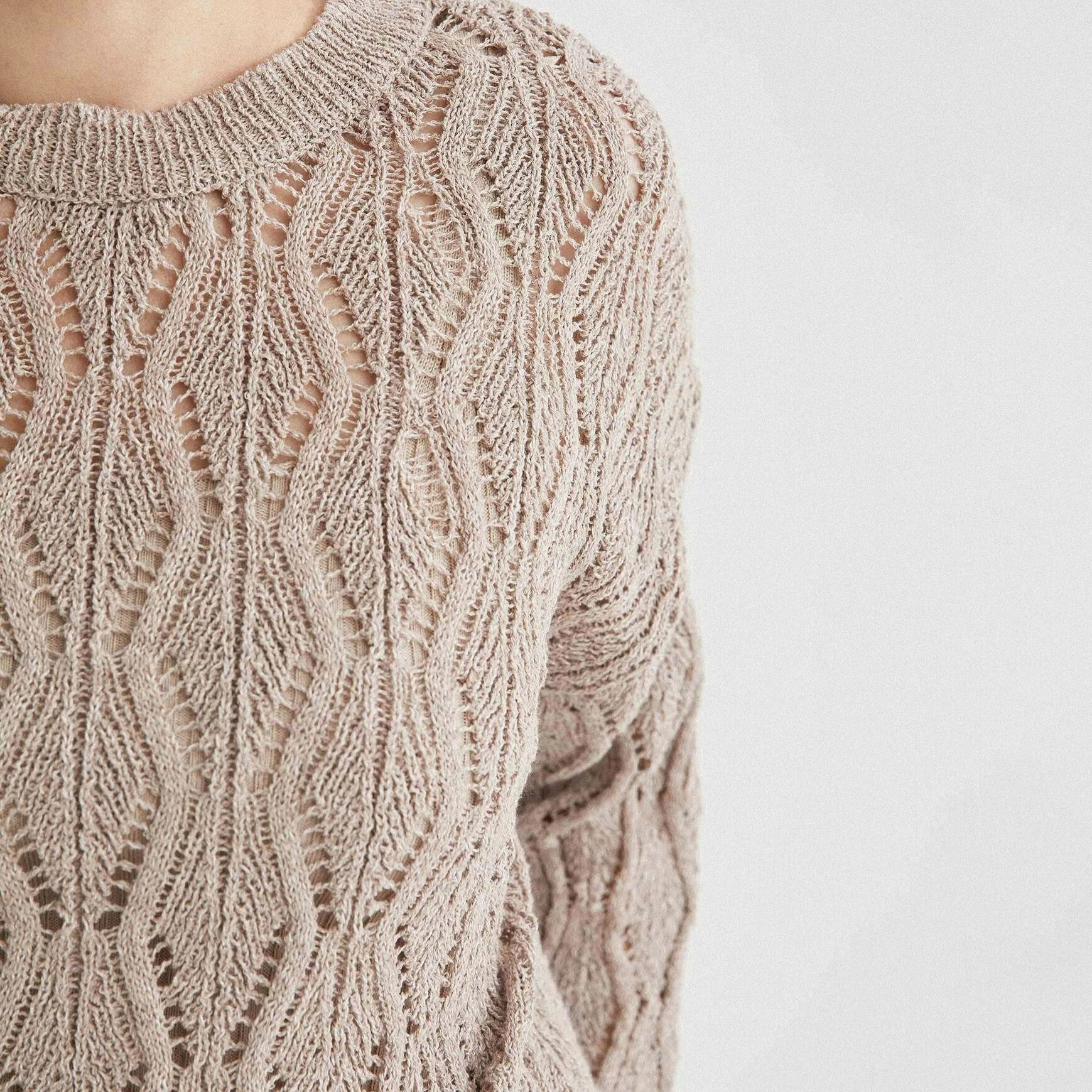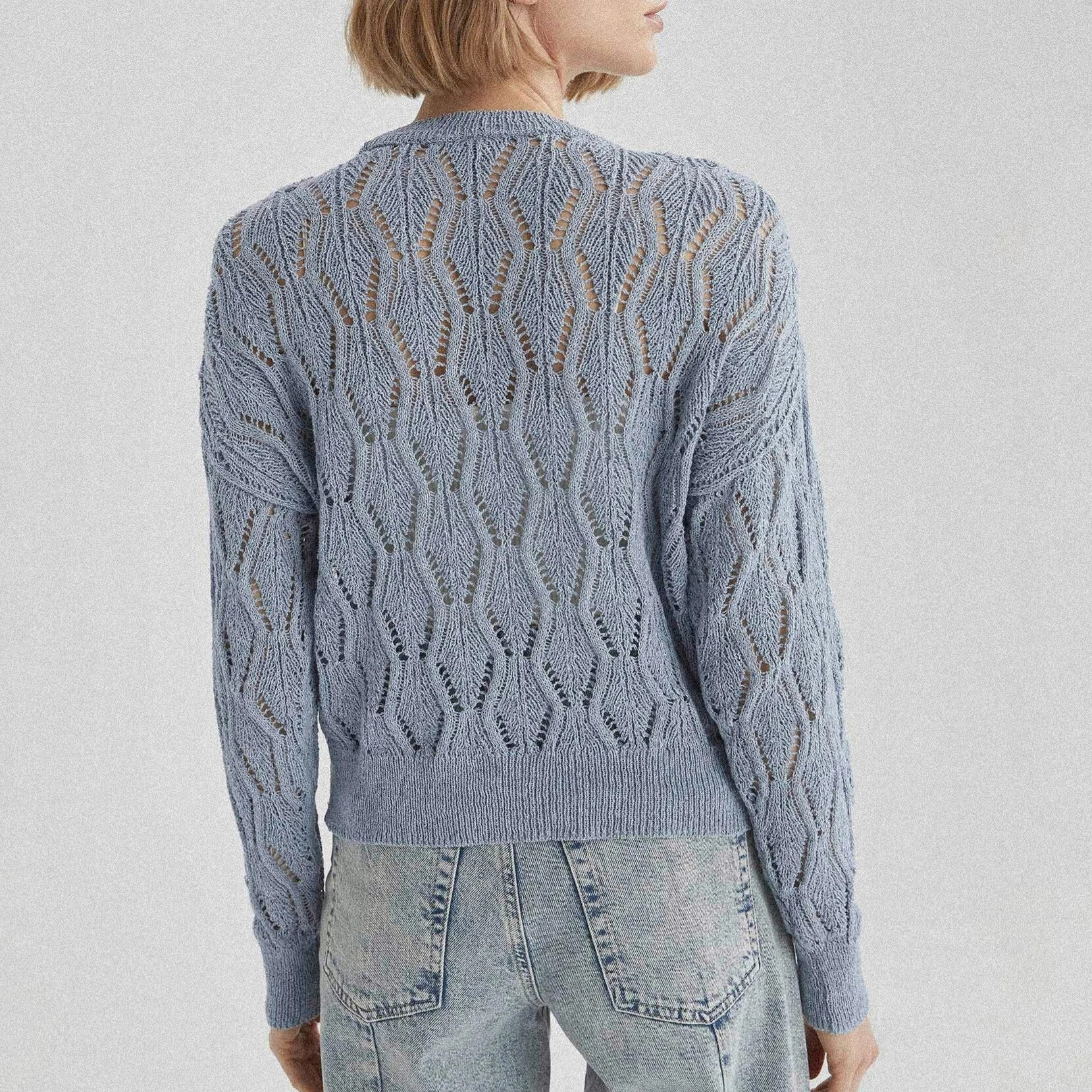 На фото джемпер DeFacto, выполненный довольно интересным ажурным узором в форме ромбов, которые отдалённо напоминают листья.