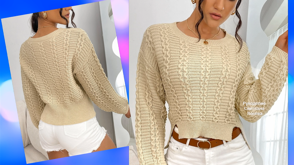 Предлагаю рассмотреть очень интересную модель джемпера от бренда SHEIN c вертикальным несложным узором "змейкой".