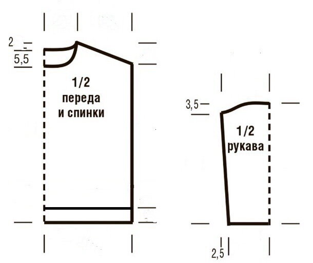Вяжется джемпер отдельными деталями. Конструктивно - это спущенное плечо и небольшой окат рукава. Используется разная длина переда/спинки и небольшой боковой разрез на высоту нижней планки. Можно вязать чисто классический окат, используя выкройку с проймой.