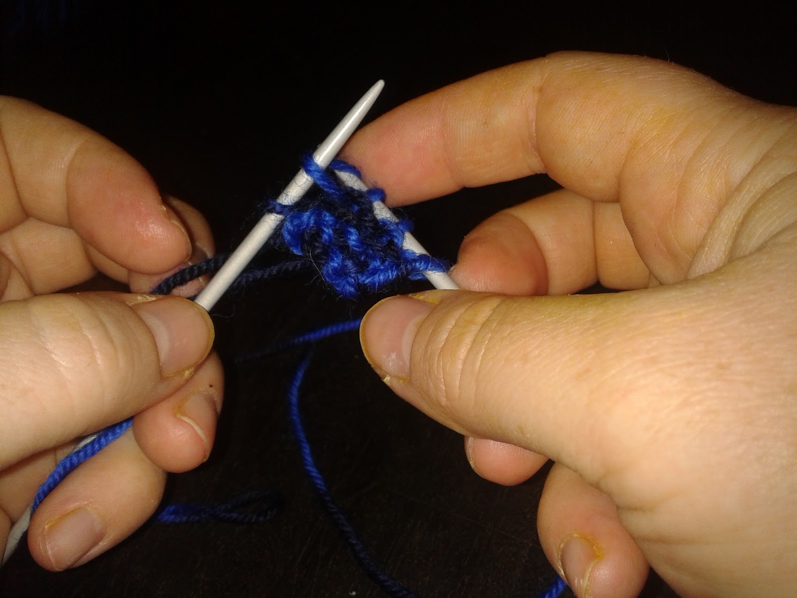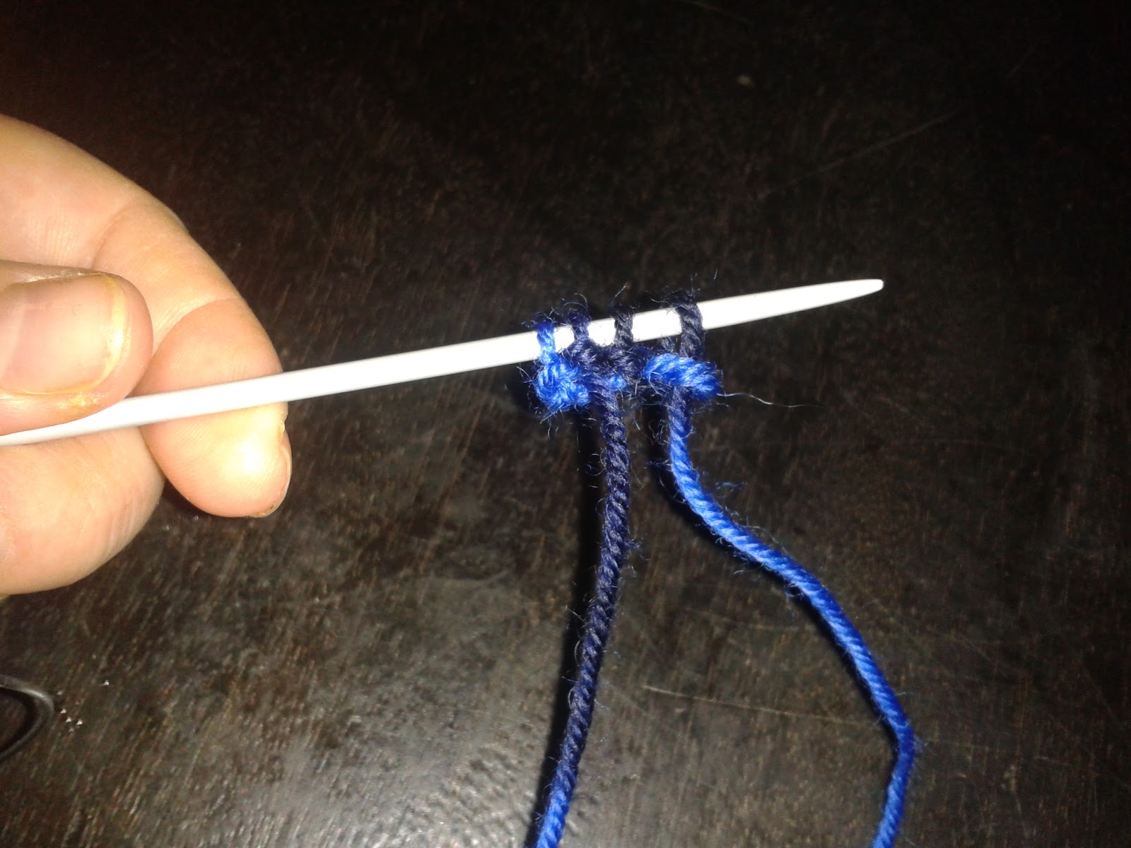 В 4-м ряду первую петлю провязываем, и делаем прибавку +1 петлю.Для этого накидываем нитку на правую спицу.