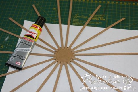 полосочек. У меня они 150х5 мм. Потом эти полосочки приклеиваем по кругу вот таким "солнышком":