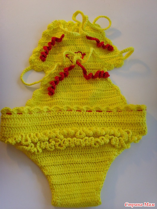 Начинаем вязать симпотичный детский купальник в виде уточки.