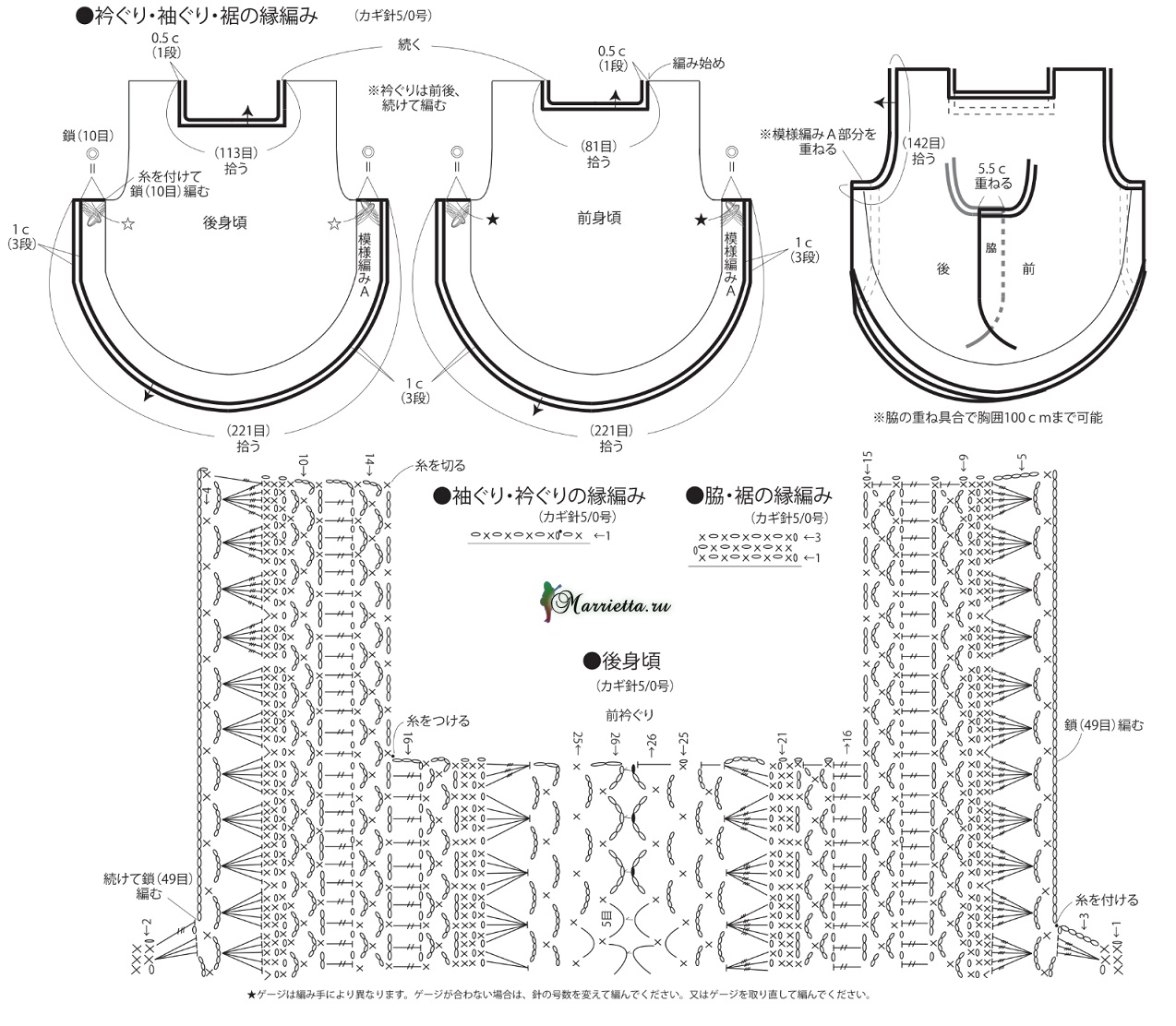 Красивый ажурный летний топ связан крючком по прилагаемой схеме. Схема хорошего качества.