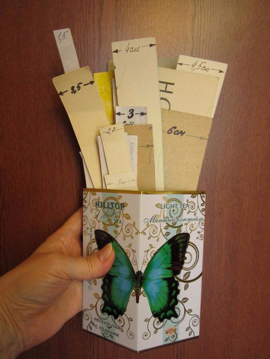 Ширину склад можно изменять, используя вилки различной ширины. Можно вилку заменить на самостоятельно изготовленный шаблон из плотного картона = прямоугольник желаемой ширины с 3-мя прорезями и 4-мя «зубьями»