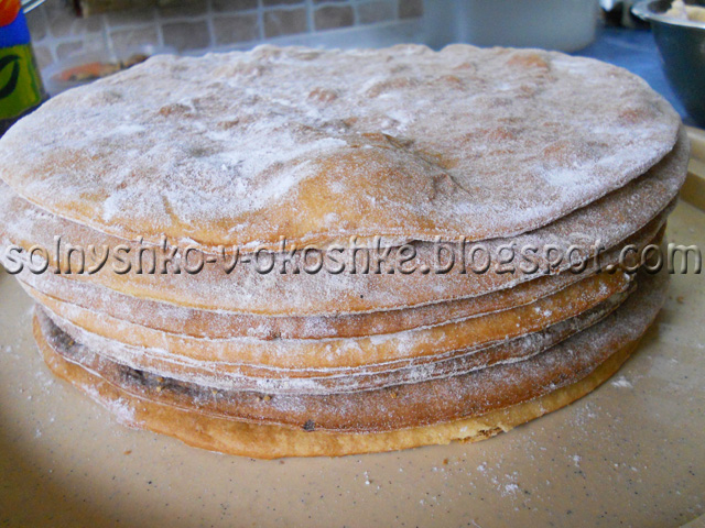 Перед сбором торта, муку с коржей можно стряхнуть.