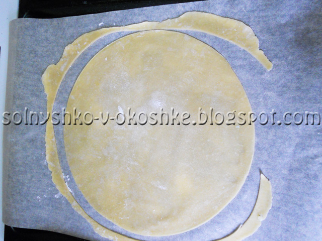 Обрезки немного отодвигаем, оставляем тут же, выпекать будем вместе с коржом.