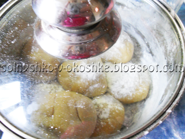 Сформировать шарики, обвалять в муке и сложить обратно в горячую кастрюлю.