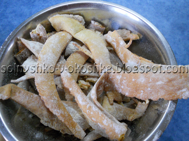 Обрезки складываем в отдельную миску, их удобно потолочь деревянной толкушкой.