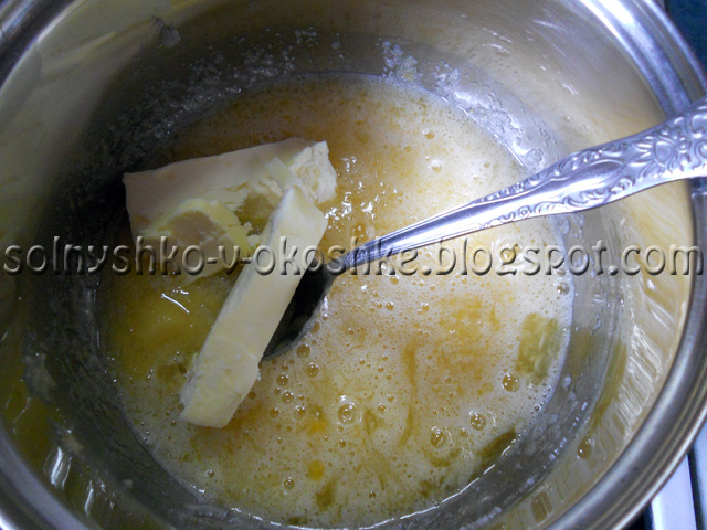 Я готовила прямо на плите. Берём в руки венчик и непрерывно размешиваем, пока сахар и мёд растворятся. Огонь умеренный. Добавить сливочное масло, размешивать до полного растворения.