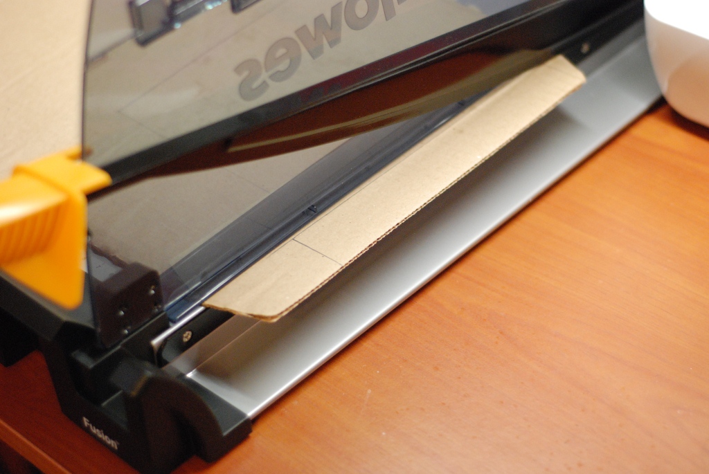 5.Закрепляем канцелярскими скрепками и прошиваем посередине. Потом при помощи линейки и резака убираем излишки.