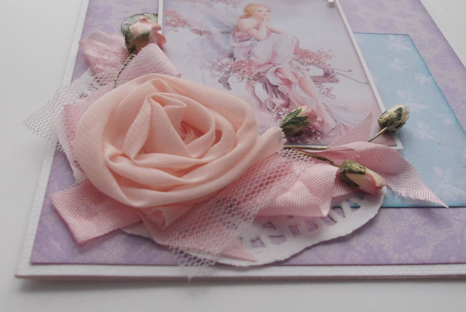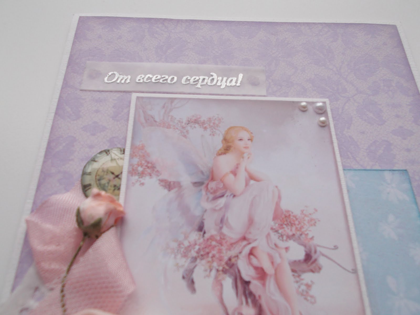 Вторая открытка вся такая нежненькая, аж хочется подарить ее самой себе. Наверное, это потому, что сделана она в моем любимом цвете.