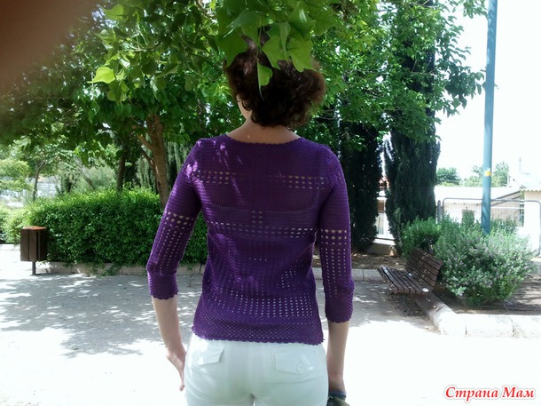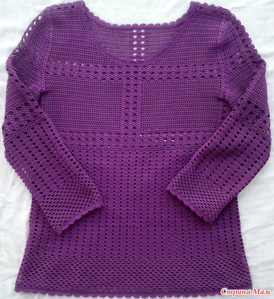 Вторым узором я провязала 55 рядов, затем 2 р. сетки и 7 рядов веерков. Далее распределила так: 3 веера, 37 ст. сетки,3 веера(центр переда),37 ст. сетки,6 вееров(3 перед,3 спинка),37 ст. сетки,3 веера(центр спинки),37 ст. сетки,3 веера.