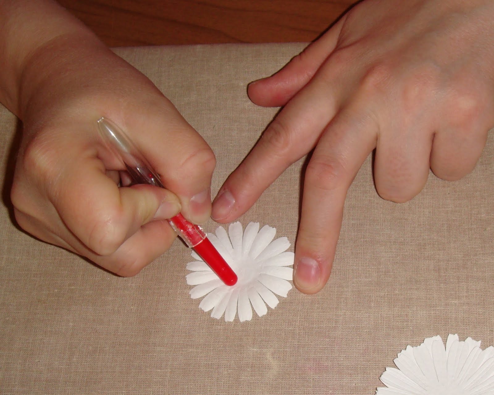 Вот теперь чуть распушаем серединку, как бы выгибая ромашку.