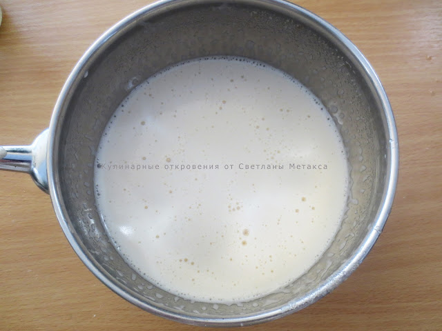 Для этого молоко налить в кастрюлю с толстым дном, поставить на средний огонь и постоянно перемешивая довести до кипения.