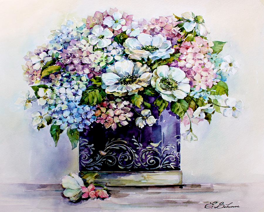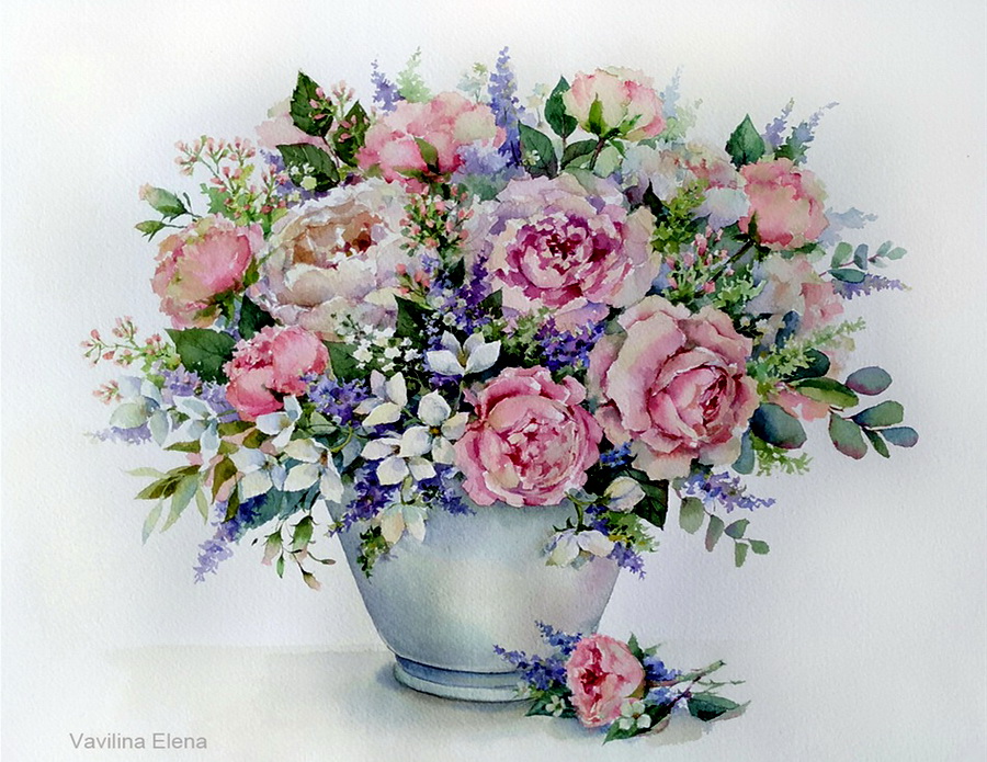 Художник Елена Вавилина живёт и работает в городе Тольятти. Пишет нежные акварельные цветы. Елена о себе.
