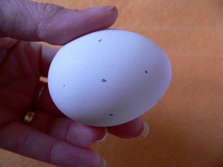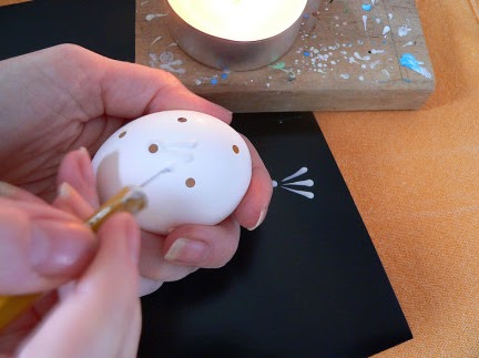 Если боитесь, что не нанесете правильно линии, можно рисунок наносить точками. Если яйца были темные и не отбелились в отбеливателе, ничего страшного, нанесение белого орнамента выглядит на коричневых яйцах не хуже, чем на белых.