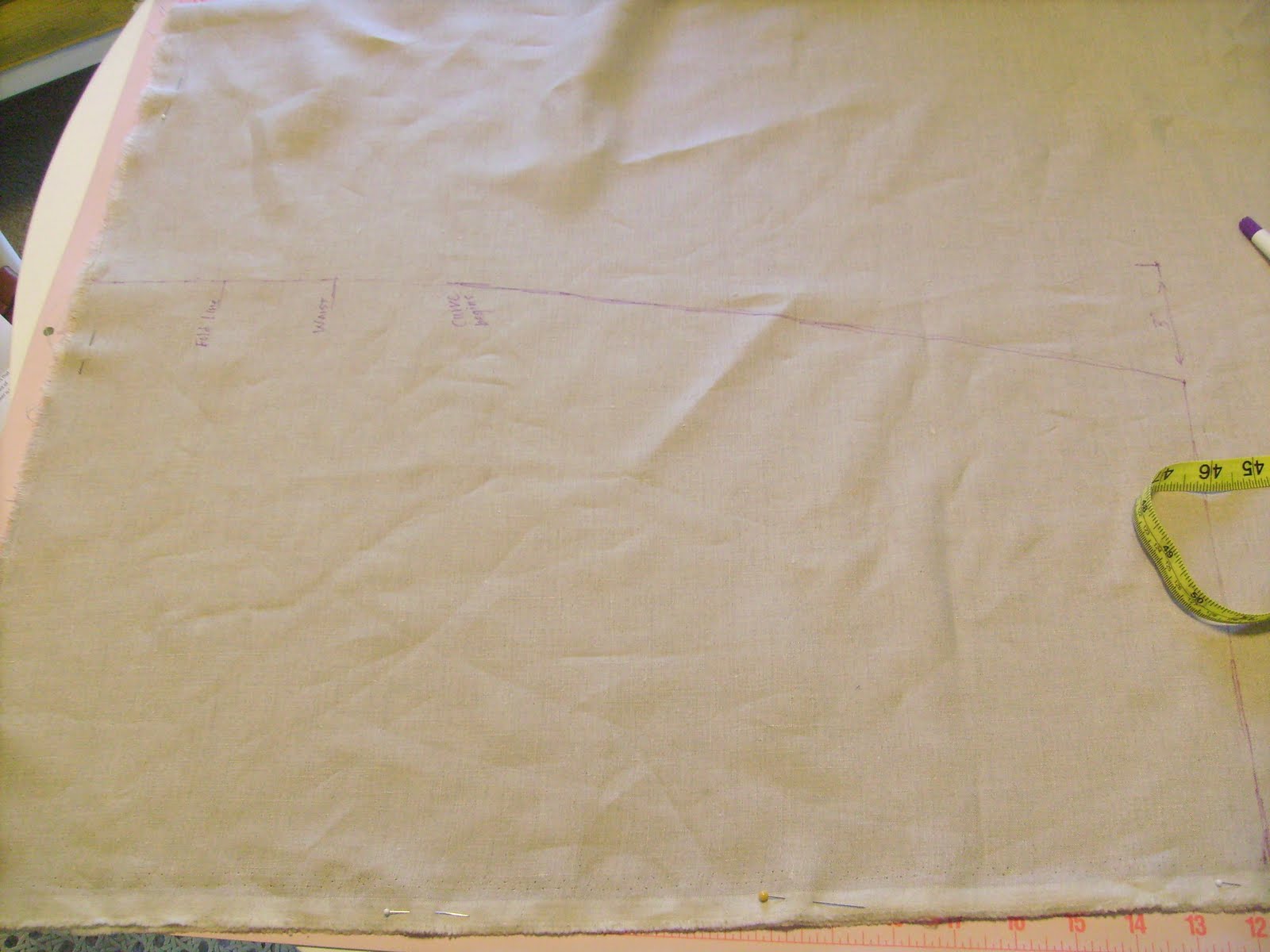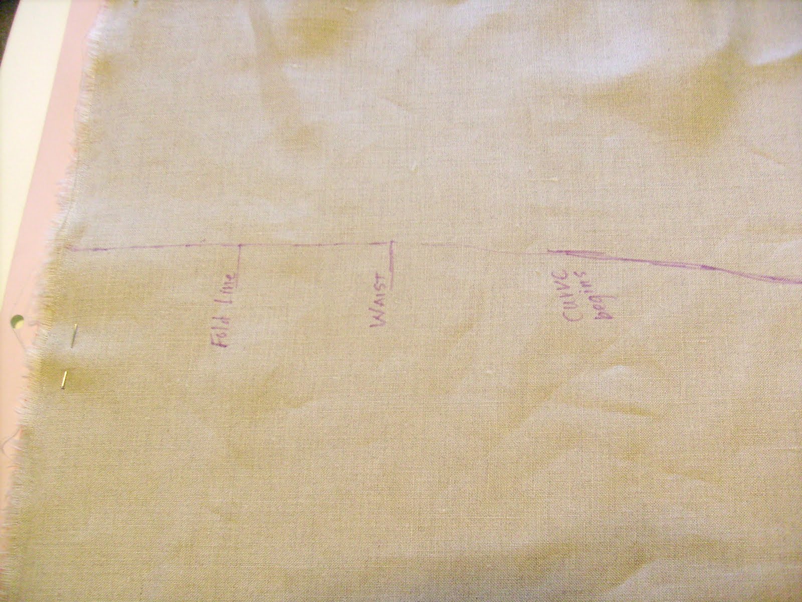 3. Линии сгиба для верхнего края 3" вниз от верхней части, а талия еще 2,5 "ниже. (дюймы)