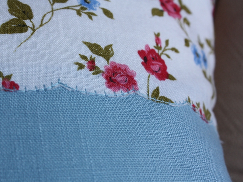 При шитье по максимуму использовала ткани и другие материалы из своего магазина. В ход пошли и ткани, и лента, и кружево, и термоаппликация с буквой "А" (угадайте, почему именно эта буква?), и двухцветный шнур. Очень пришлись здесь кстати фетровые пуговки-цветочки. Изначально их тут не было, зато не покидало ощущение, что чего-то не хватает. По-моему, цветочки отлично сюда вписались.