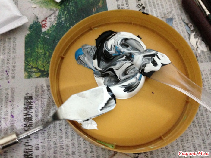 Смешиваем черный, белый, голубой.