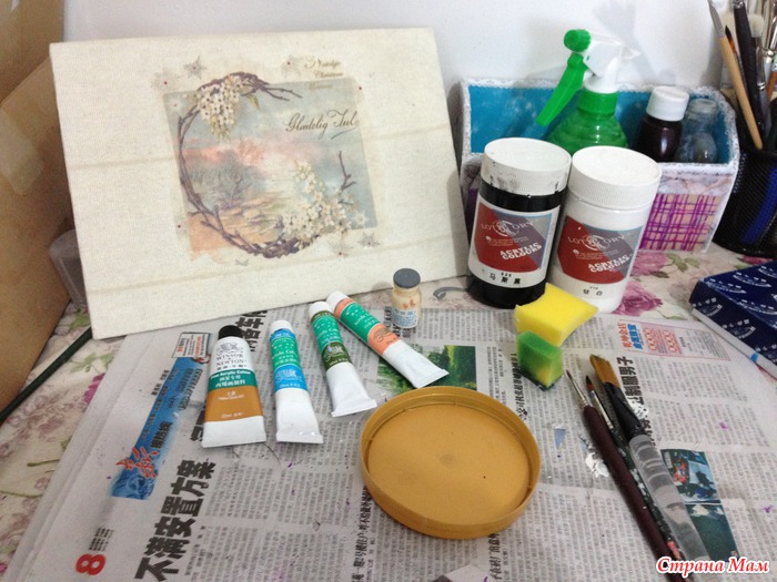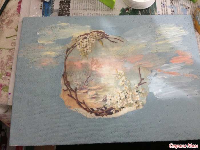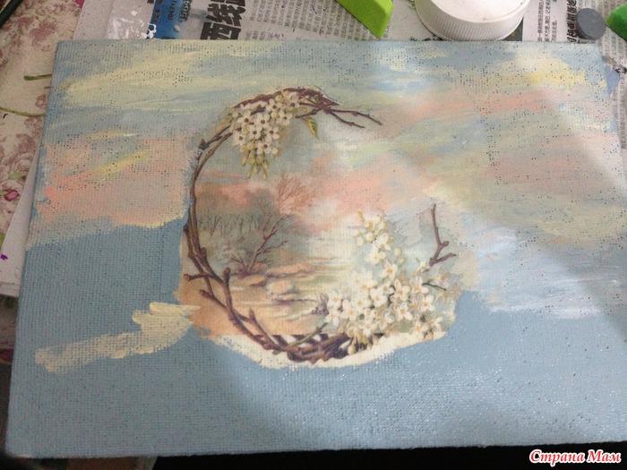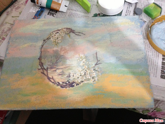 Сделала еще одну картину с декупажем на ткани. Так как многим понравилось и задавались вопросы по работе, то решилась выложить для вас МК. Сильно строго не судите. Если есть недочеты, исправляйте. Буду рада дельным советам.
