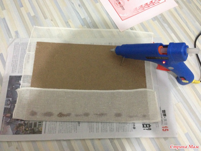 Хорошенько промазываем ткань клеем.