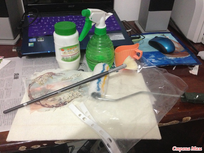 Нам понадобится клей ПВА 1:1, кисть, салфетка(самый верхний слой), файл, валик и соленая вода( 1 ст. л. на стакан воды). Соленая вода нужна для укрепления салфетки. Ее нужно наливать в пулевизатор.