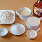 3. Приготовить тесто. В средней миске смешать муку, сахар, разрыхлитель, соду, соль. Добавить кленовый сироп и 2 столовые ложки топленого масла, размешать. Выложить тесто на посыпанную мукой рабочую поверхность и вымесить до однородной консистенции. Тесто должно быть очень мягким и немного липким.