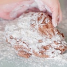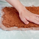 2. Сделать тесто. Разогреть духовку до 220 градусов. Смазать форму 1 столовой ложкой топленого масла. В средней миске смешать муку, какао-порошок, сахар, разрыхлитель, соду и соль. Добавить молоко и 2 столовые ложки сливочного масла и размешать. Выложить тесто на посыпанную мукой рабочую поверхность и замесить, пока тесто не станет гладким.
