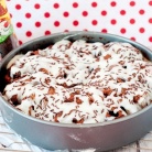 3. Раскатать тесто в прямоугольник размером 20Х30 см. Вылить 2 столовые ложки топленого масла на тесто и смазать его равномерно пальцами. Выложить начинку, оставляя границы по краям 1 см. Посыпать нарезанными шоколадными чипсами.