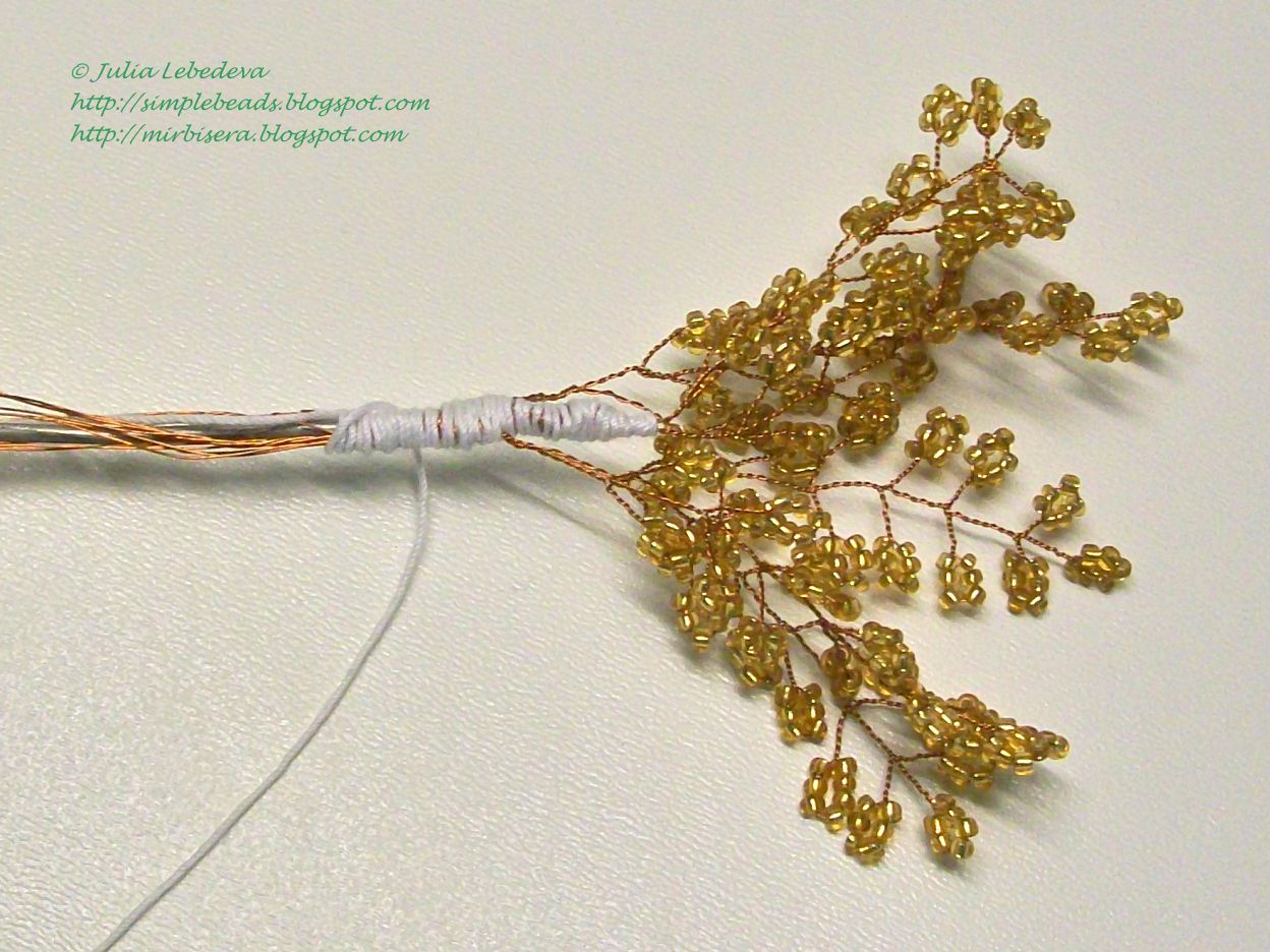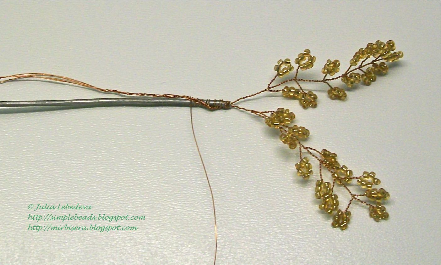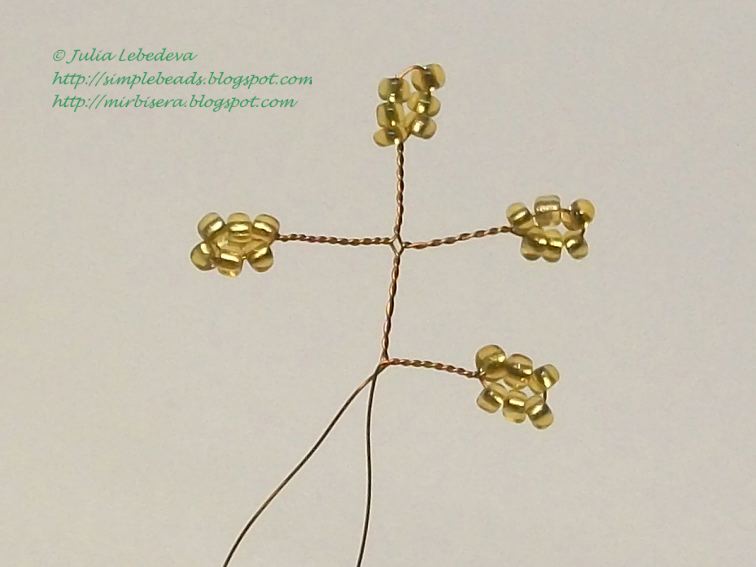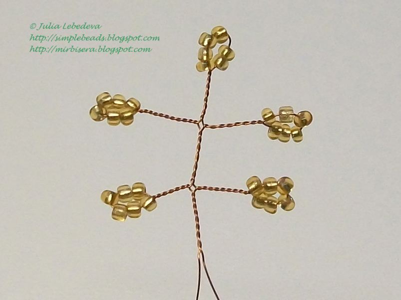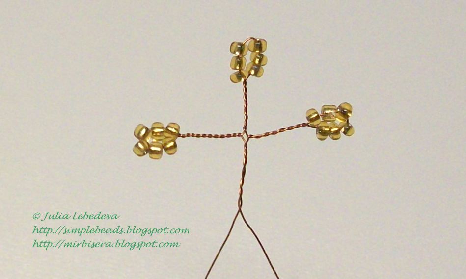 Снова делаем из бисеринок петельку и закручиваем проволоку.