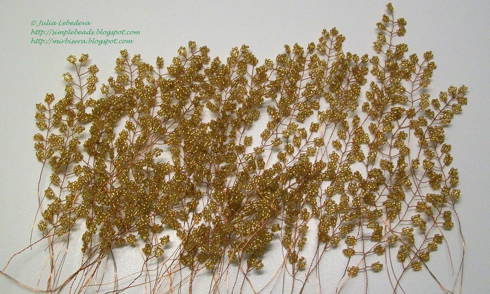 Продолжаем делать на проволоке последовательные ряды петелек из бисера. Сначала плетём петельку на одном конце проволоки,