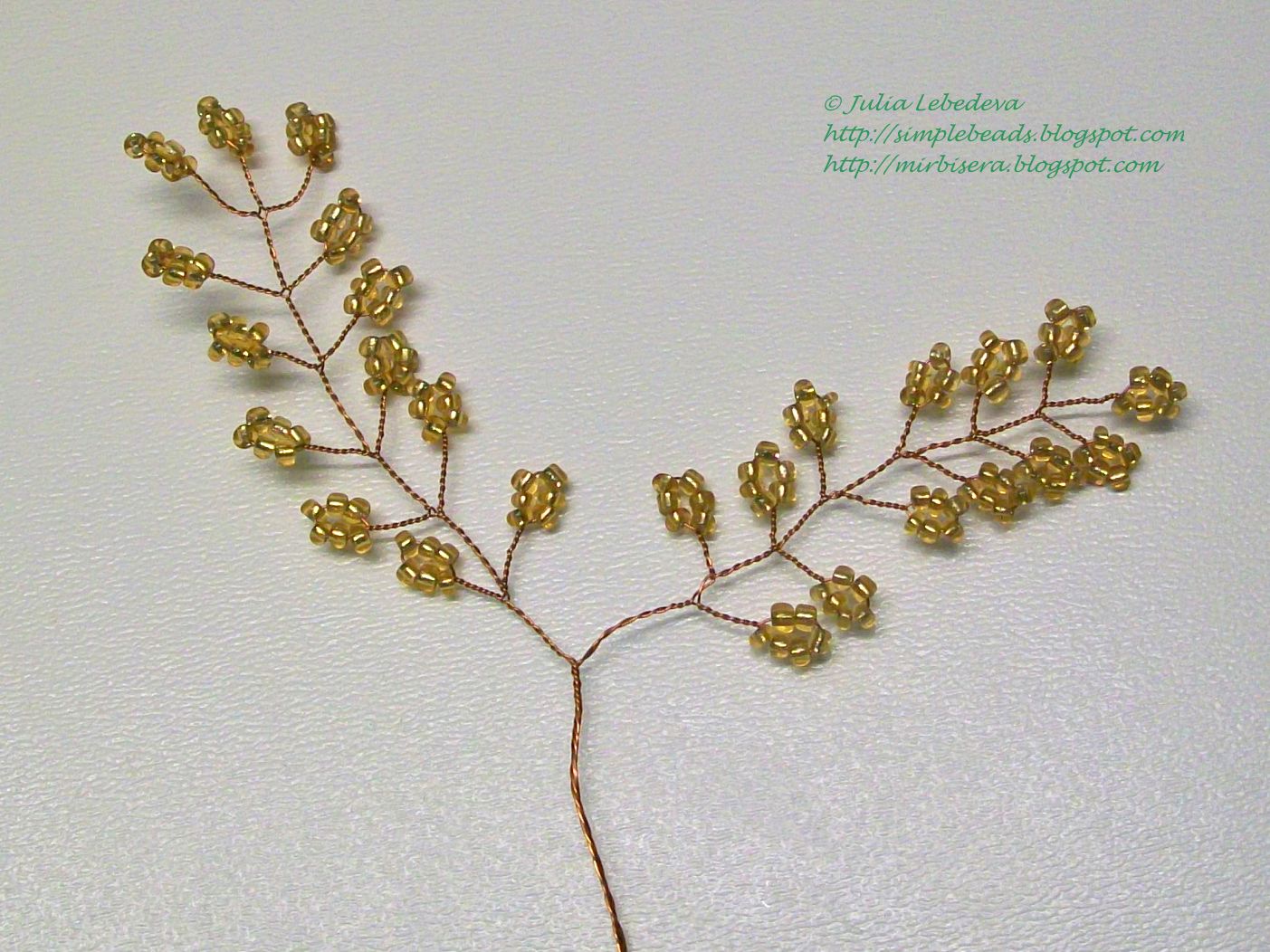 Немного прижимаем листики к центральной оси веточки снизу вверх, придавая веточке форму колоска. Так листики будут лежать плотнее друг к другу.